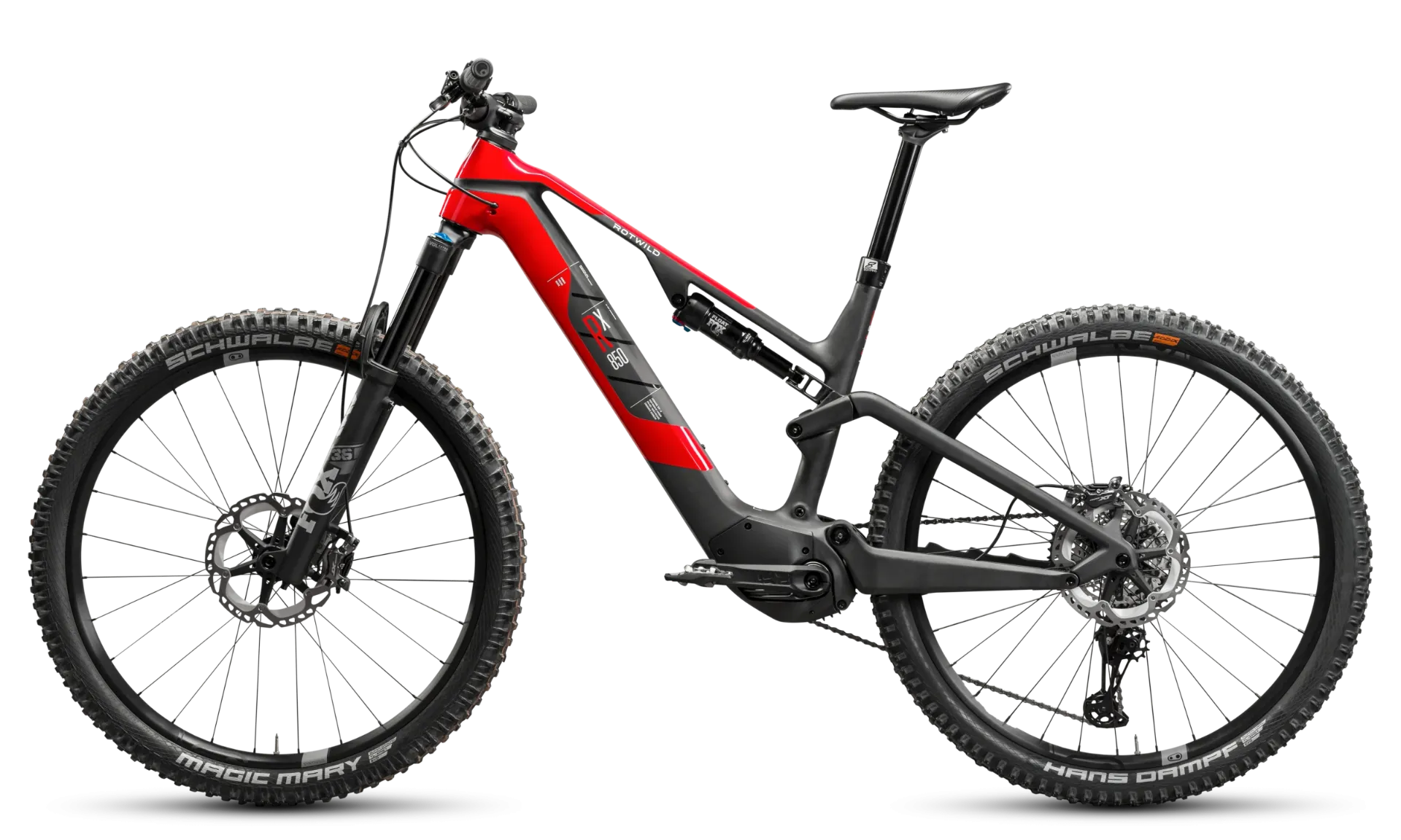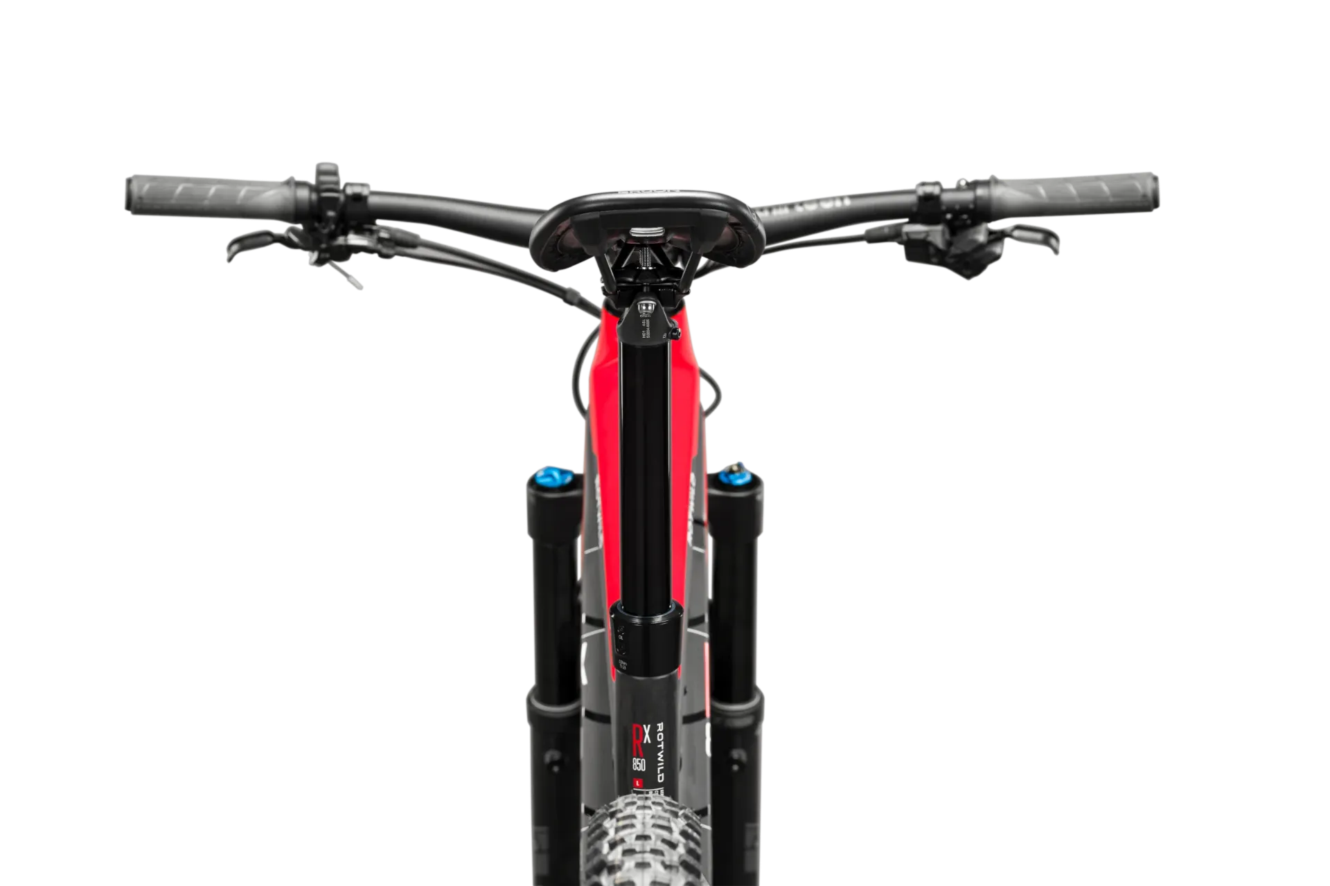 Výrobce pro R.X850 uvádí geometrii s hlavovým úhlem 67°, sedlovým úhlem 75°, chainstay délkou 450 mm a reach od 430 mm do 500 mm podle velikosti. V kombinaci se zdvihem 150 / 144 mm a 29" koly to odpovídá vyváženému all-mountain kolu, které má být stabilní ve sjezdech, jisté v technickém terénu a zároveň efektivní při delších výjezdech.