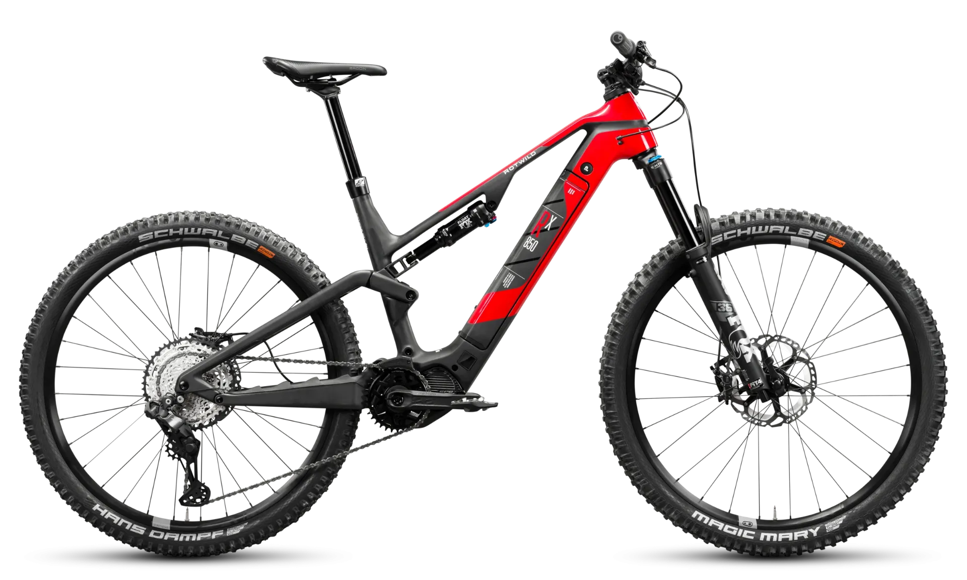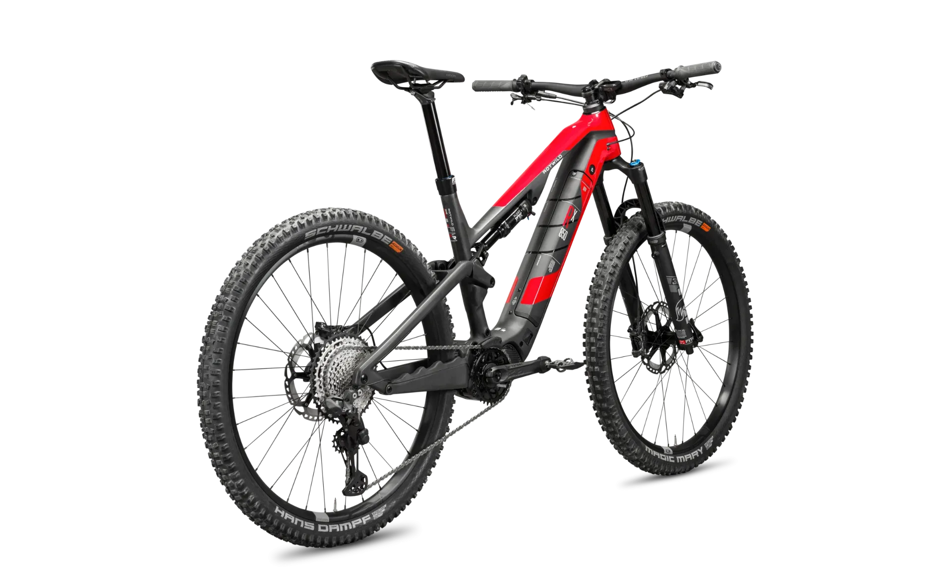 Výrobce pro R.X850 uvádí geometrii s hlavovým úhlem 67°, sedlovým úhlem 75°, chainstay délkou 450 mm a reach od 430 mm do 500 mm podle velikosti. V kombinaci se zdvihem 150 / 144 mm a 29" koly to odpovídá vyváženému all-mountain kolu, které má být stabilní ve sjezdech, jisté v technickém terénu a zároveň efektivní při delších výjezdech.